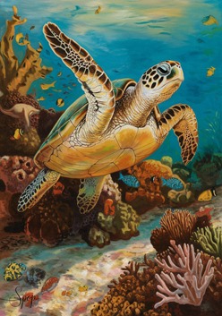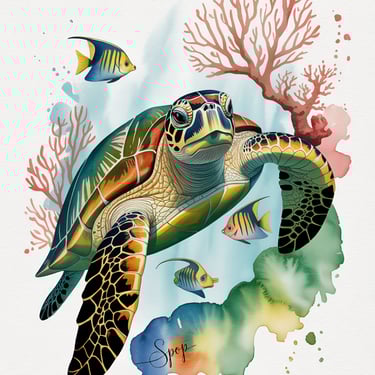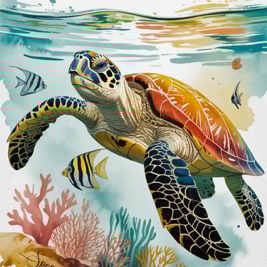 The Hawksbill has always felt like a symbol of delicate endurance to me — a sea wanderer surviving among coral kingdoms that are themselves under threat. Its amber‑patterned shell, once coveted and nearly its undoing, now stands as a reminder of what beauty we must protect, not take. These portraits are my tribute to its story and its shimmering presence, created to help keep this ocean guardian alive in our collective image.